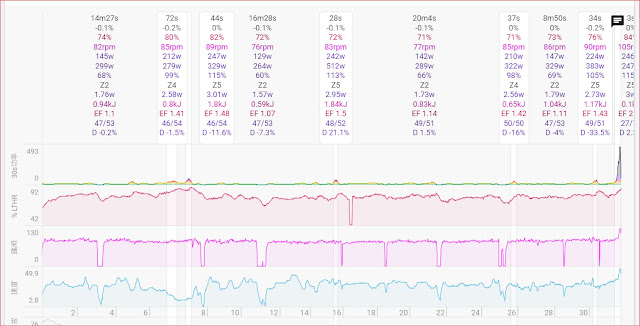 第1站只有15公里,應該是TT路線,就以95的轉速不超過Z3的方式來騎。第2站34公里,就降到85轉數,不要超過Z4的方式來騎。